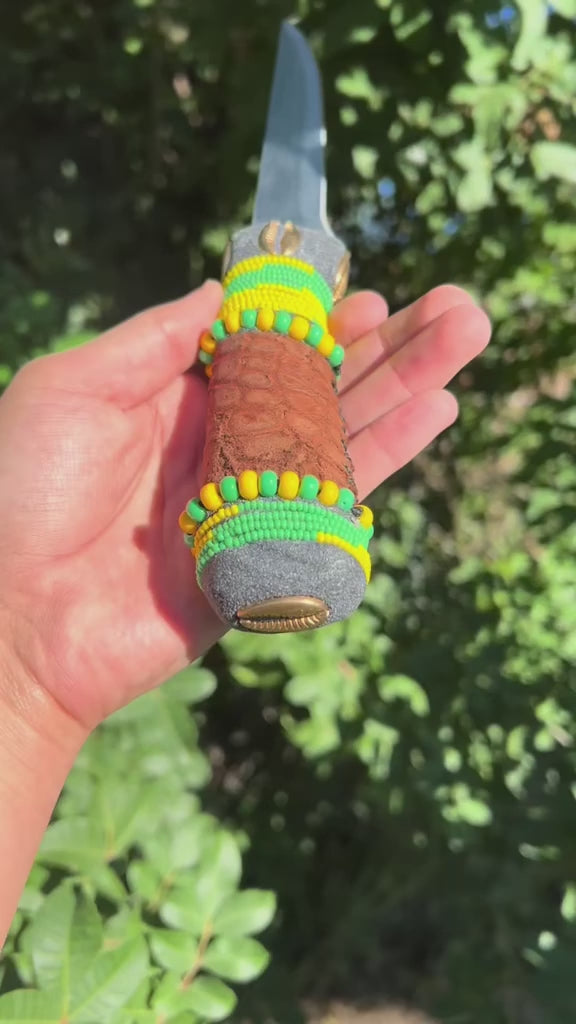 Nuestros cuchillos son forjados con precisión y cuidado, asegurando que cada hoja no solo cumpla con los más altos estándares de artesanía, sino que también resuene con las vibraciones espirituales de los Orishas y Santos. Hechos de materiales de alta calidad, estos cuchillos son duraderos, afilados y perfectamente equilibrados, lo que los hace ideales para cualquier uso ceremonial. Los mangos están decorados intrincadamente, reflejando las vibrantes y ricas tradiciones de la Santería, Palo Mayombe y Espiritismo.