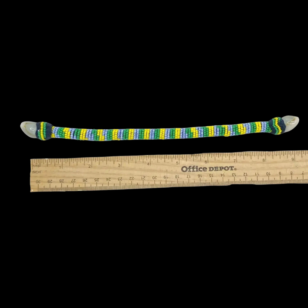 Green, yellow, blue, and white beads honor Babalú-Ayé’s healing and protective energy.