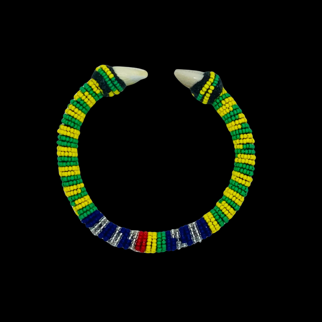 Discover a handmade Lukumí Orula Ildé created to honor Olokun. Featuring green, yellow, blue, red, and white beads with sacred cowrie shells, this bracelet carries the vast energy of the ocean depths and Orula’s guiding wisdom.